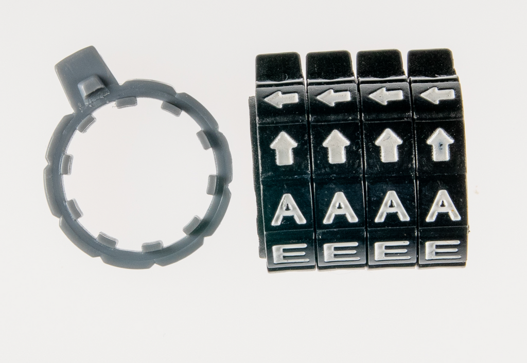 The Breakout EDU Shape Wheel. Part of the Breakout EDU Multilock family, these interchangeable wheels allow for expanded use of the Breakout EDU Multilock in any of the kit-based games. Including a new grey starter wheel, the wheels include: